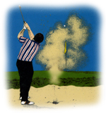 - hitting from a buried bunker lie, a good lie, fairway bunkers, a downhill lie and a lie near the lip